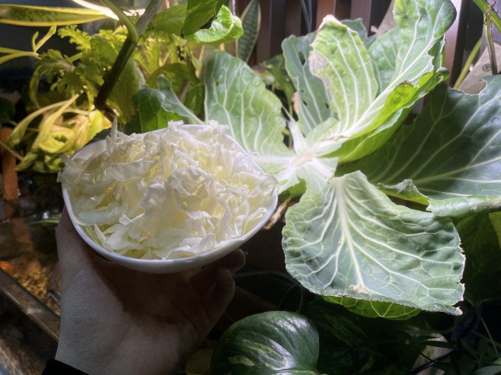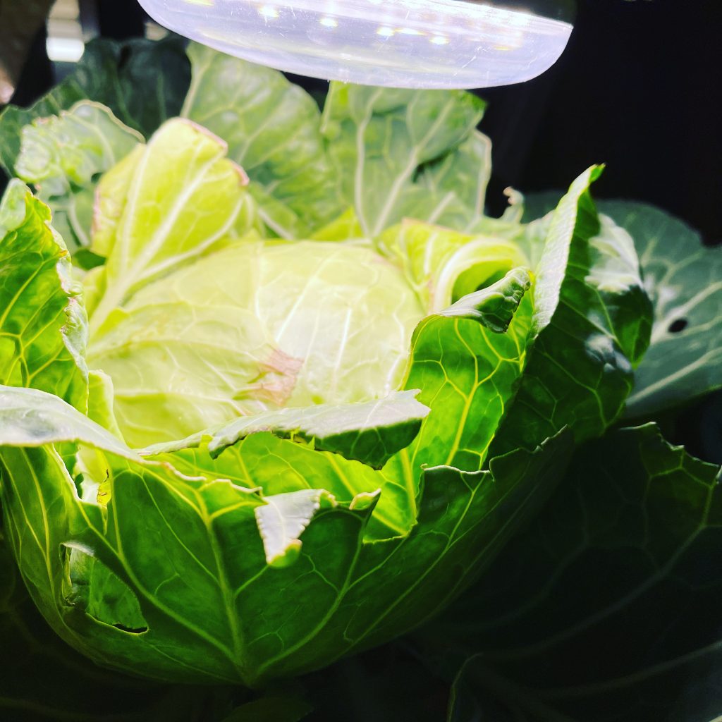 今回は、ほどんど前例がない結球するキャベツのLED栽培を自給ラボのなかたさんがチャレンジ、見事キャベツができました。