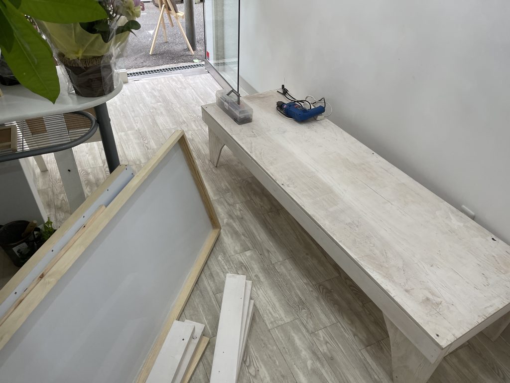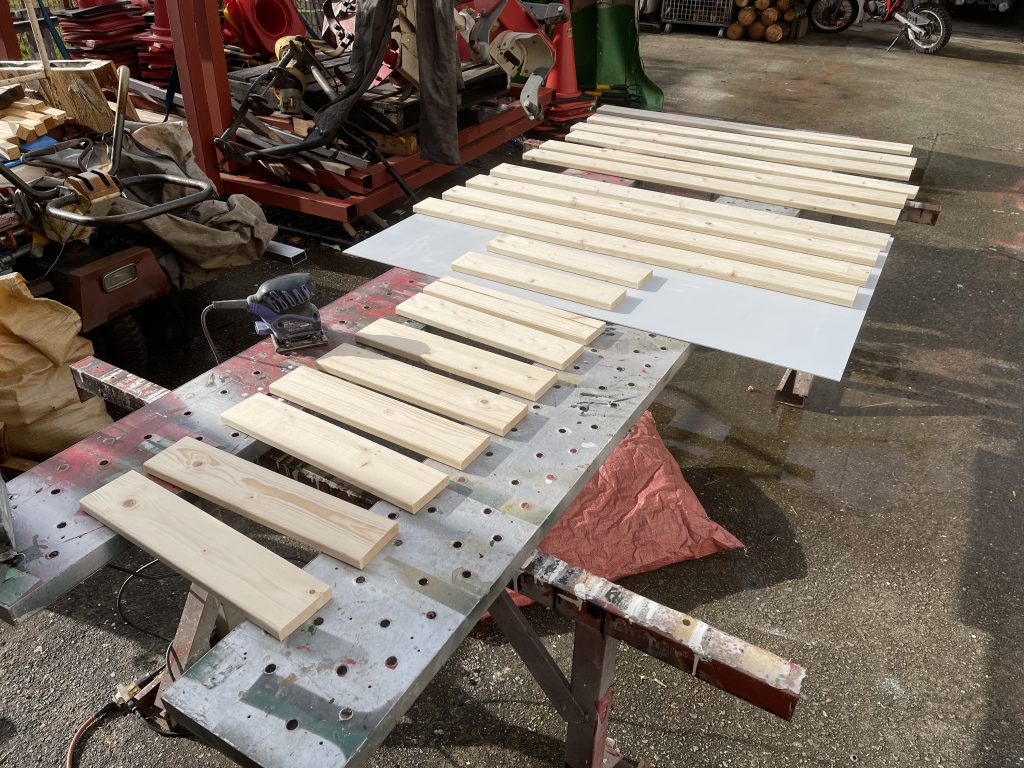 脚の補強からプランターを設置する台、LEDライトの固定までを行います。